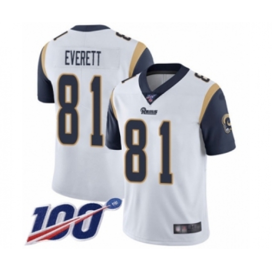 >Men's Los Angeles Rams #81 Gerald Everett White Vapor Untouchable Limited Player 100th Season Football Jersey