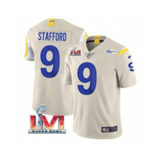 Men's Los Angeles Rams #9 Matthew Stafford Bone 2022 Super Bowl LVI Vapor Limited Stitched Jersey