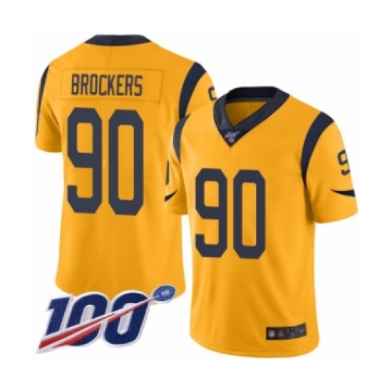 >Men's Los Angeles Rams #90 Michael Brockers Limited Gold Rush Vapor Untouchable 100th Season Football Jersey