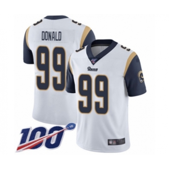 Men's Los Angeles Rams #99 Aaron Donald White Vapor Untouchable Limited Player 100th Season Football Jersey
