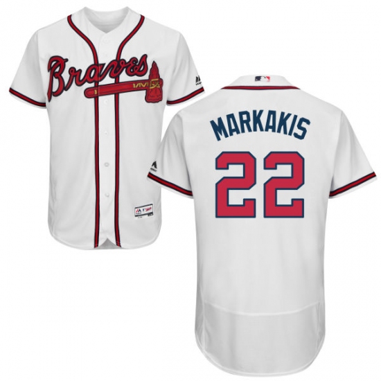 Home>MLB>Atlanta Braves>Nick Markakis>Men's Majestic Atlanta Braves #22 Nick Markakis White Home Flex Base Authentic Collection MLB Jersey