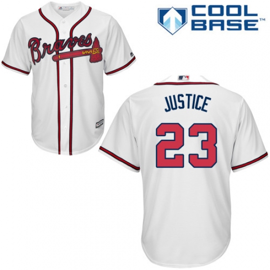 Home>MLB>Atlanta Braves>David Justice>Men's Majestic Atlanta Braves #23 David Justice Replica White Home Cool Base MLB Jersey