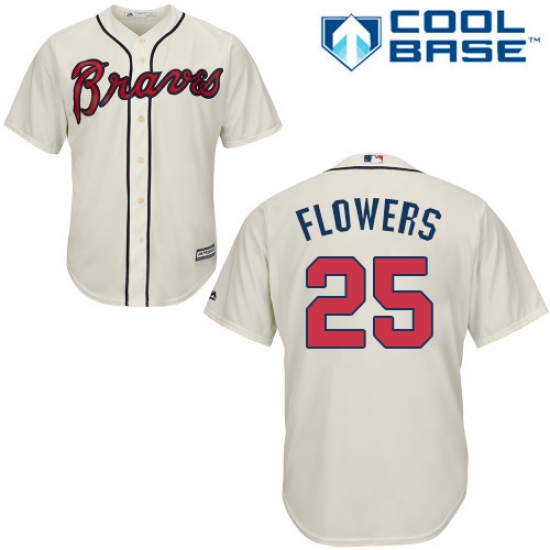 Men's Majestic Atlanta Braves #25 Tyler Flowers Replica Cream Alternate 2 Cool Base MLB Jersey