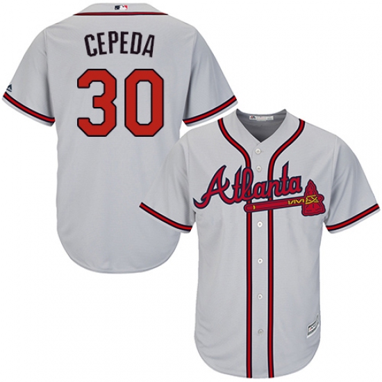 Men's Majestic Atlanta Braves #30 Orlando Cepeda Replica Grey Road Cool Base MLB Jersey