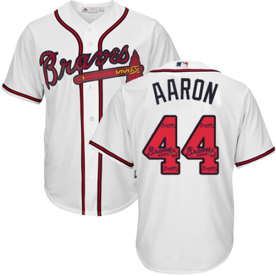 Men's Majestic Atlanta Braves #44 Hank Aaron Authentic White Team Logo Fashion Cool Base MLB Jersey