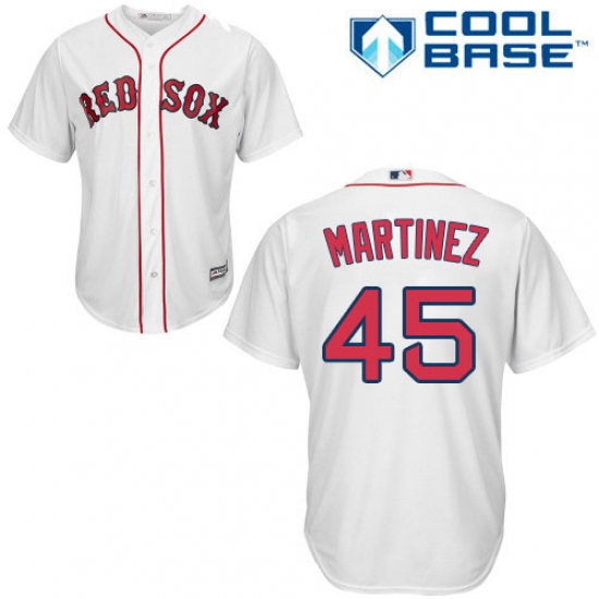 Home>MLB>Boston Red Sox>Pedro Martinez>Men's Majestic Boston Red Sox #45 Pedro Martinez Replica White Home Cool Base MLB Jersey