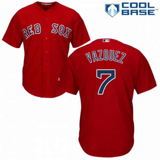 Home>MLB>Boston Red Sox>Christian Vazquez>Men's Majestic Boston Red Sox #7 Christian Vazquez Replica Red Alternate Home Cool Base MLB Jersey