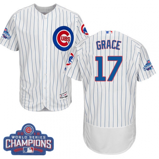 Men's Majestic Chicago Cubs #17 Mark Grace White 2016 World Series Champions Flexbase Authentic Collection MLB Jersey
