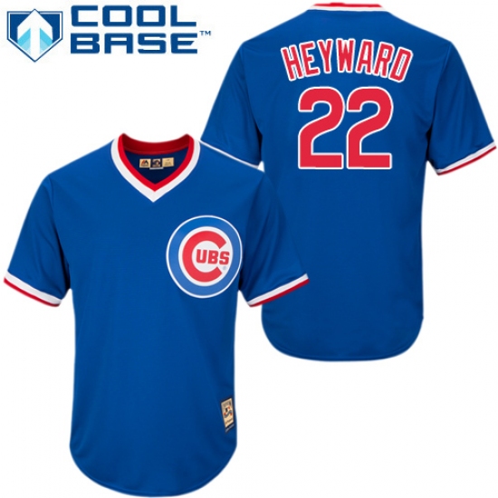 Men's Majestic Chicago Cubs #22 Jason Heyward Authentic Blue/White Strip Cooperstown Throwback MLB Jersey