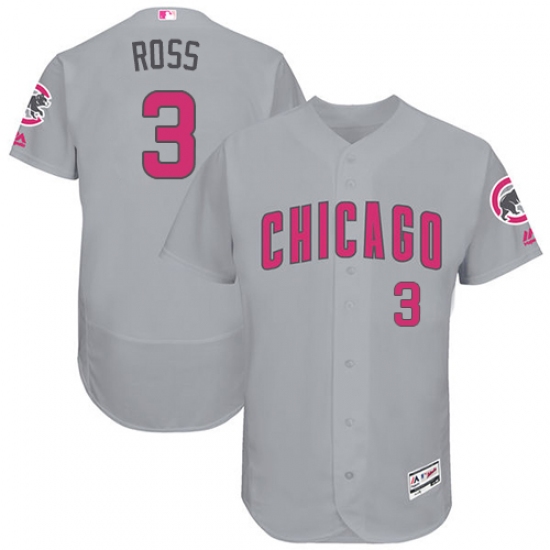 Home>MLB>Chicago Cubs>David Ross>Men's Majestic Chicago Cubs #3 David Ross Grey Mother's Day Flexbase Authentic Collection MLB Jersey