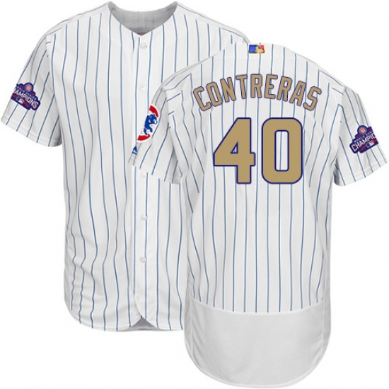 Men's Majestic Chicago Cubs #40 Willson Contreras White 2017 Gold Program Flexbase Authentic Collection MLB Jersey