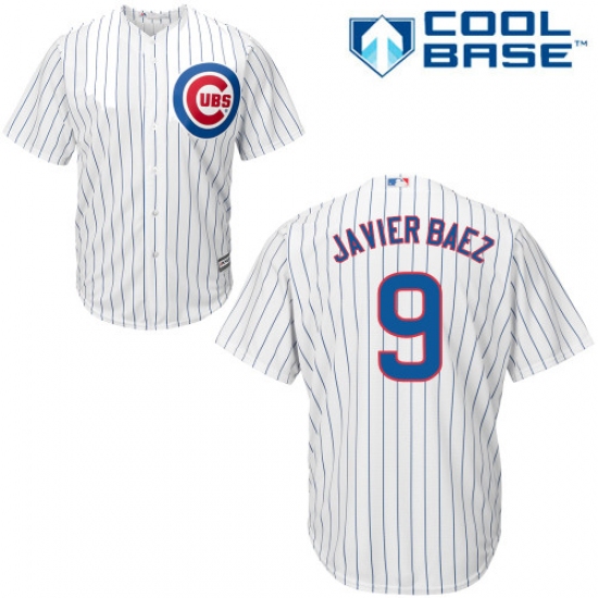 Men's Majestic Chicago Cubs #9 Javier Baez Replica White Home Cool Base MLB Jersey