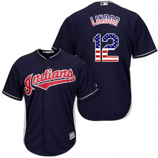Home>MLB>Cleveland Indians>Francisco Lindor>Men's Majestic Cleveland Indians #12 Francisco Lindor Authentic Navy Blue USA Flag Fashion MLB Jersey