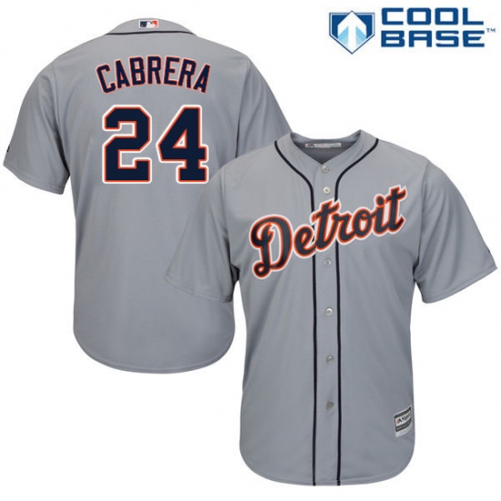 Home>MLB>Detroit Tigers>Miguel Cabrera>Men's Majestic Detroit Tigers #24 Miguel Cabrera Replica Grey Road Cool Base MLB Jersey