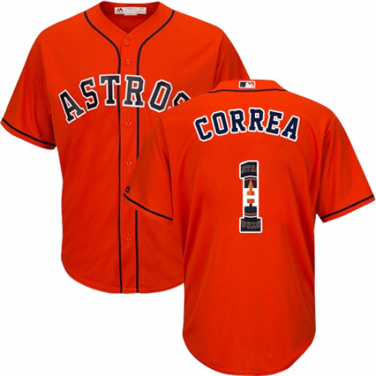 Men's Majestic Houston Astros #1 Carlos Correa Authentic Orange Team Logo Fashion Cool Base MLB Jersey