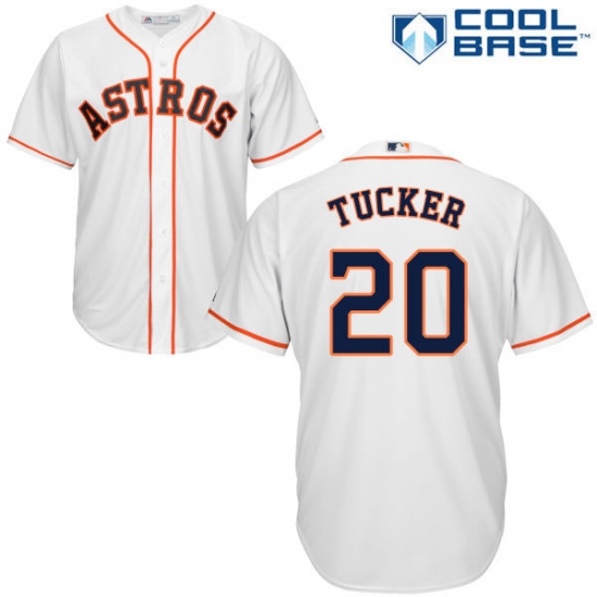 Home>MLB>Houston Astros>Preston Tucker>Men's Majestic Houston Astros #20 Preston Tucker Replica White Home Cool Base MLB Jersey