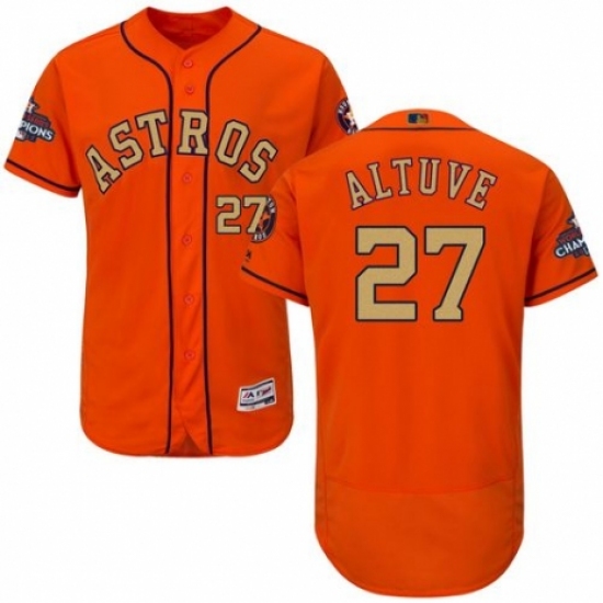 >Men's Majestic Houston Astros #27 Jose Altuve Orange Alternate 2018 Gold Program Flex Base Authentic Collection MLB Jersey