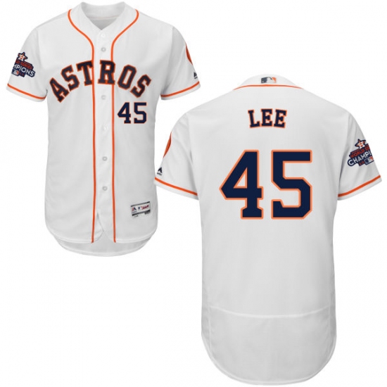 Home>MLB>Houston Astros>Carlos Lee>Men's Majestic Houston Astros #45 Carlos Lee Authentic White Home 2017 World Series Champions Flex Base MLB Jersey