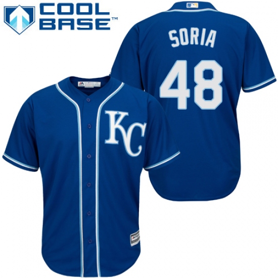 Men's Majestic Kansas City Royals #48 Joakim Soria Replica Blue Alternate 2 Cool Base MLB Jersey