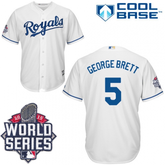 Home>MLB>Kansas City Royals>George Brett>Men's Majestic Kansas City Royals #5 George Brett Authentic White Home Cool Base 2015 World Series Patch MLB Jersey