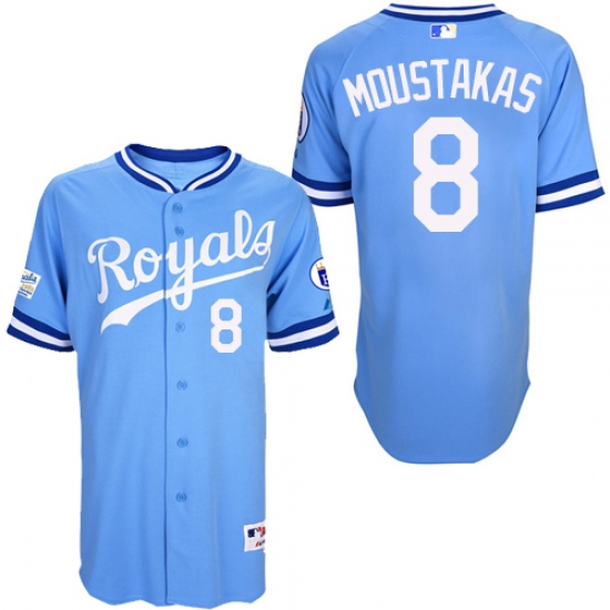 Home>MLB>Kansas City Royals>Mike Moustakas>Men's Majestic Kansas City Royals #8 Mike Moustakas Replica Light Blue 1985 Turn Back The Clock MLB Jersey
