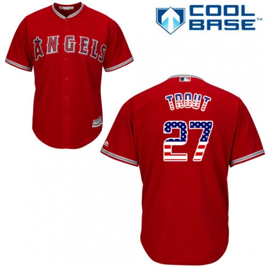 Home>MLB>Los Angeles Angels of Anaheim>Mike Trout>Men's Majestic Los Angeles Angels of Anaheim #27 Mike Trout Authentic Red USA Flag Fashion MLB Jersey