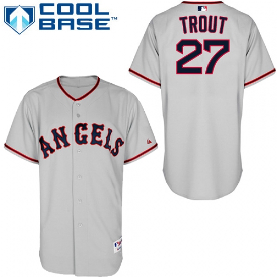 Home>MLB>Los Angeles Angels of Anaheim>Mike Trout>Men's Majestic Los Angeles Angels of Anaheim #27 Mike Trout Replica Grey 1965 Turn Back The Clock MLB Jersey
