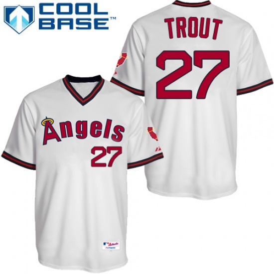 Men's Majestic Los Angeles Angels of Anaheim #27 Mike Trout Replica White 1980 Turn Back The Clock MLB Jersey