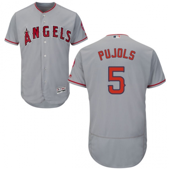 Men's Majestic Los Angeles Angels of Anaheim #5 Albert Pujols Grey Road Flex Base Authentic Collection MLB Jersey
