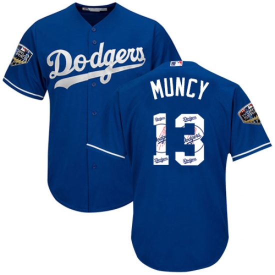 Men's Majestic Los Angeles Dodgers #13 Max Muncy Authentic Royal Blue Team Logo Fashion Cool Base 2018 World Series MLB Jersey