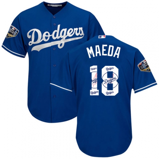 Men's Majestic Los Angeles Dodgers #18 Kenta Maeda Authentic Royal Blue Team Logo Fashion Cool Base 2018 World Series MLB Jersey