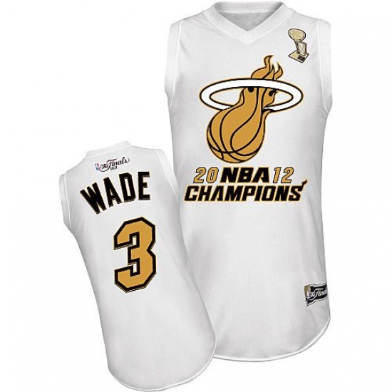 Men's Majestic Miami Heat #3 Dwyane Wade Authentic White Finals Champions NBA Jersey