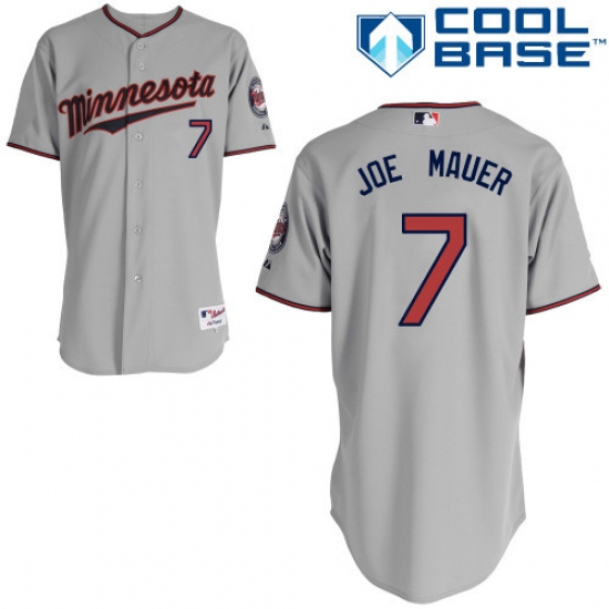 Men's Majestic Minnesota Twins #7 Joe Mauer Replica Grey Road Cool Base MLB Jersey