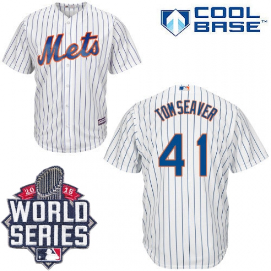 Men's Majestic New York Mets #41 Tom Seaver Replica White Home Cool Base 2015 World Series MLB Jersey