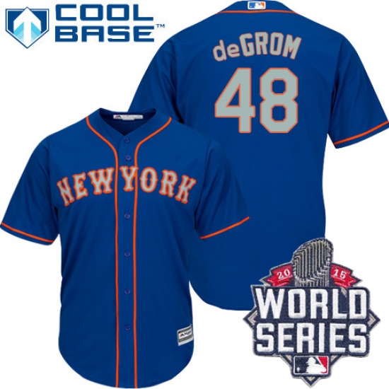 Home>MLB>New York Mets>Jacob deGrom>Men's Majestic New York Mets #48 Jacob deGrom Authentic Royal Blue Alternate Road Cool Base 2015 World Series MLB Jersey