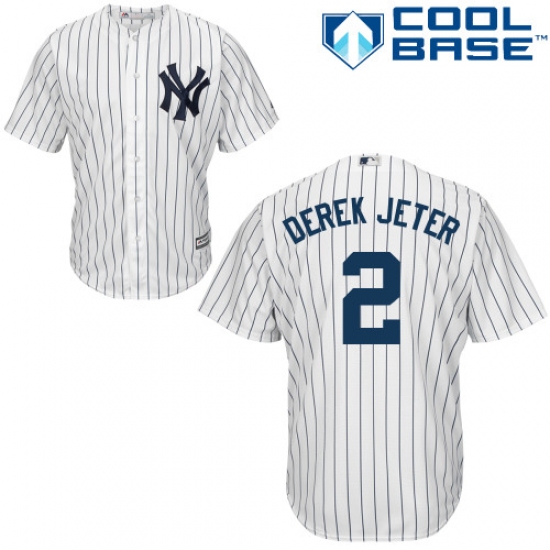 Home>MLB>New York Yankees>Derek Jeter>Men's Majestic New York Yankees #2 Derek Jeter Replica White Home MLB Jersey