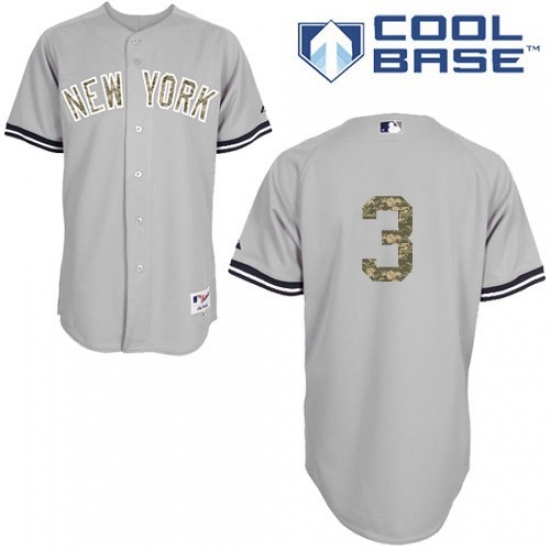 Men's Majestic New York Yankees #3 Babe Ruth Replica Grey USMC Cool Base MLB Jersey