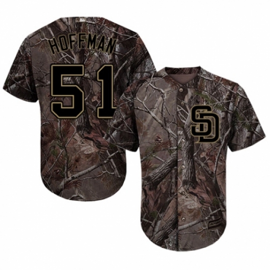 >Men's Majestic San Diego Padres #51 Trevor Hoffman Authentic Camo Realtree Collection Flex Base MLB Jersey
