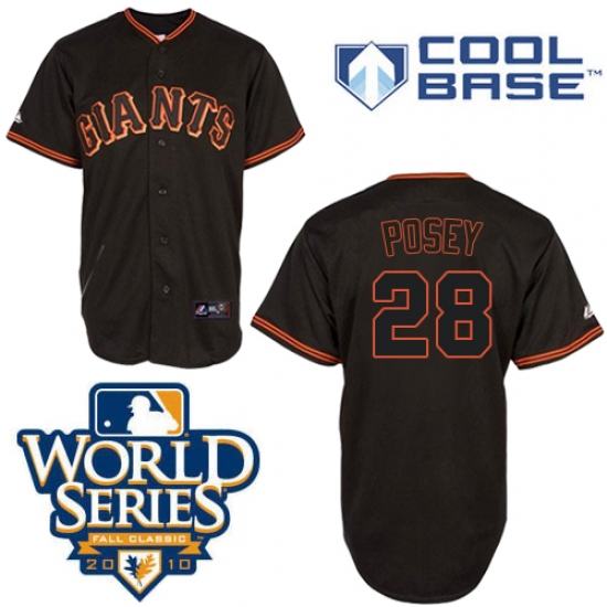 Men's Majestic San Francisco Giants #28 Buster Posey Authentic Black Cool Base 2010 World Series Patch MLB Jersey