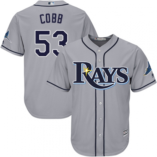 Home>MLB>Tampa Bay Rays>Alex Cobb>Men's Majestic Tampa Bay Rays #53 Alex Cobb Replica Grey Road Cool Base MLB Jersey