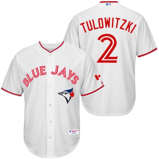 Home>MLB>Toronto Blue Jays>Troy Tulowitzki>Men's Majestic Toronto Blue Jays #2 Troy Tulowitzki Replica White 2015 Canada Day MLB Jersey