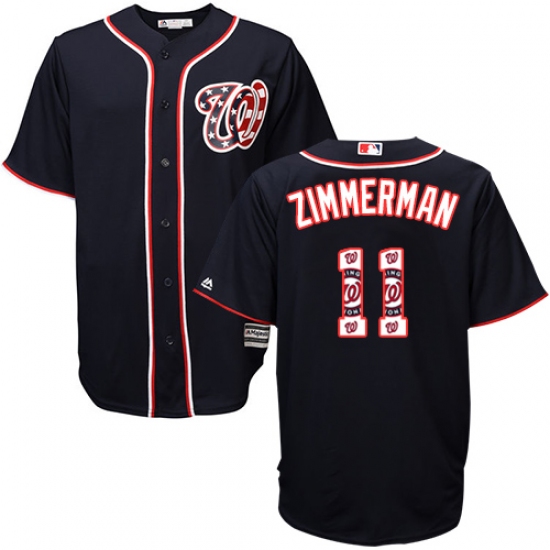 Home>MLB>Washington Nationals>Ryan Zimmerman>Men's Majestic Washington Nationals #11 Ryan Zimmerman Authentic Navy Blue Team Logo Fashion Cool Base MLB Jersey
