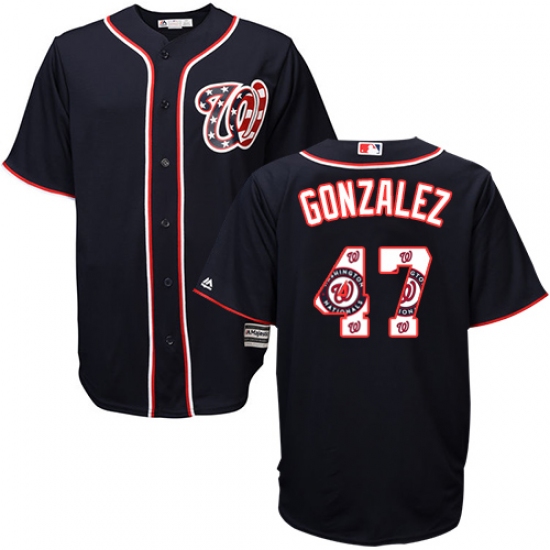 Home>MLB>Washington Nationals>Gio Gonzalez>Men's Majestic Washington Nationals #47 Gio Gonzalez Authentic Navy Blue Team Logo Fashion Cool Base MLB Jersey