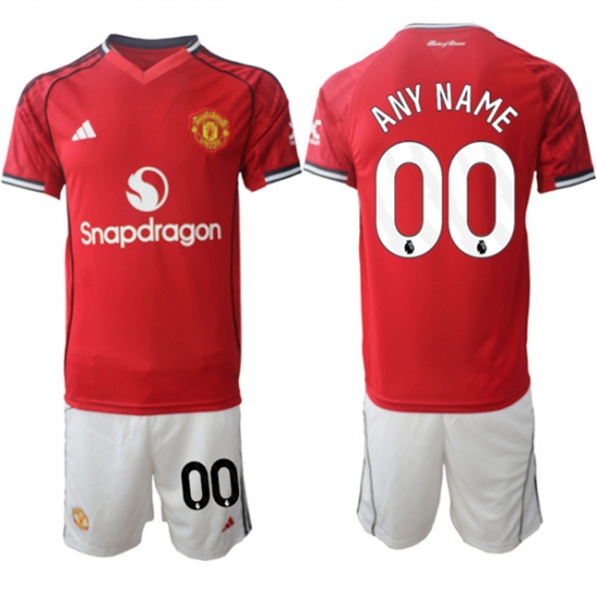 >Men's Manchester United Custom 2025-26 Red Home Soccer Jersey Suit