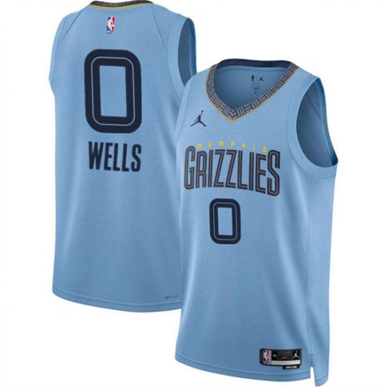 Men's Memphis Grizzlies #0 Jaylen Wells Blue 2024 Draft Statement Edition Stitched Jersey