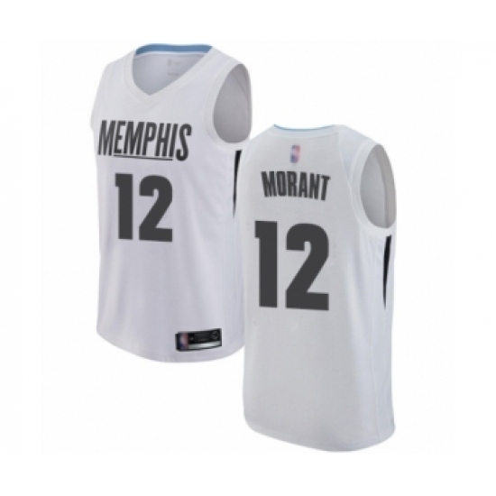 >Men's Memphis Grizzlies #12 Ja Morant Authentic White Basketball Jersey - City Edition