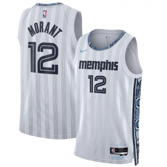 >Men's Memphis Grizzlies #12 Ja Morant Gray 2025-26 City Edition Swingman Stitched Jersey
