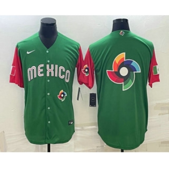 Men's Mexico Baseball Blank 2023 Green World Classic Stitched Jersey