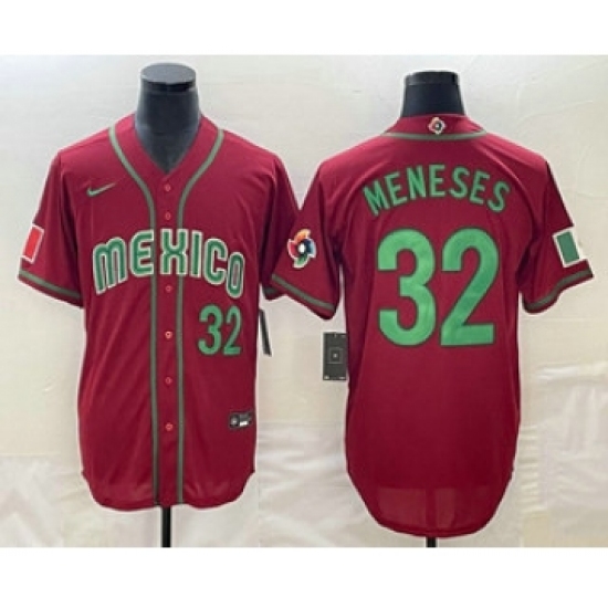 Men's Mexico Baseball #32 Joey Meneses Number 2023 Red World Classic Stitched Jersey