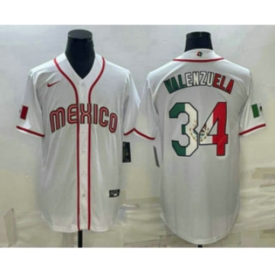 >Men's Mexico Baseball #34 Fernando Valenzuela 2023 White World Classic Stitched Jersey